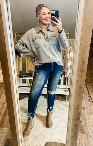 Grey Half Button Pullover