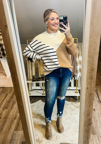 Striped Camel Colorblock Sweater